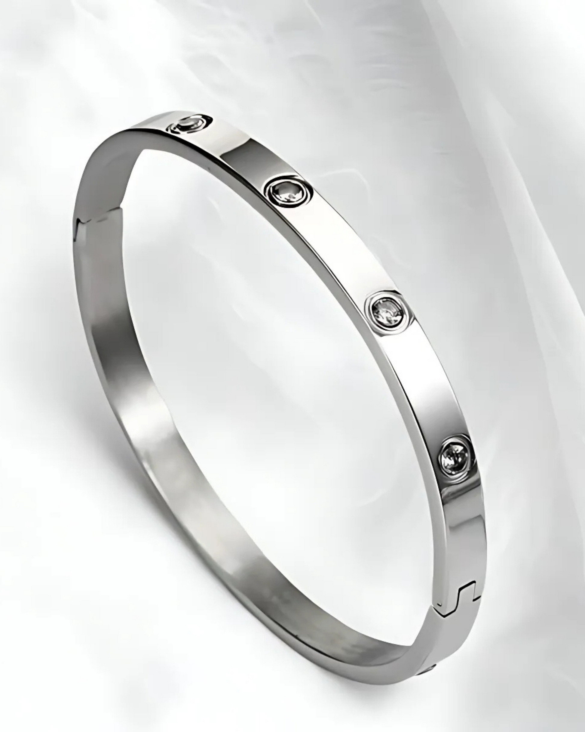 Add a touch of elegance to your everyday look with our Anti-Tarnish Silver Plated Love Bracelet for women. Crafted from high-quality stainless steel and finished with a sleek silver polish, this bracelet blends minimalist design with lasting shine — all while resisting tarnish.